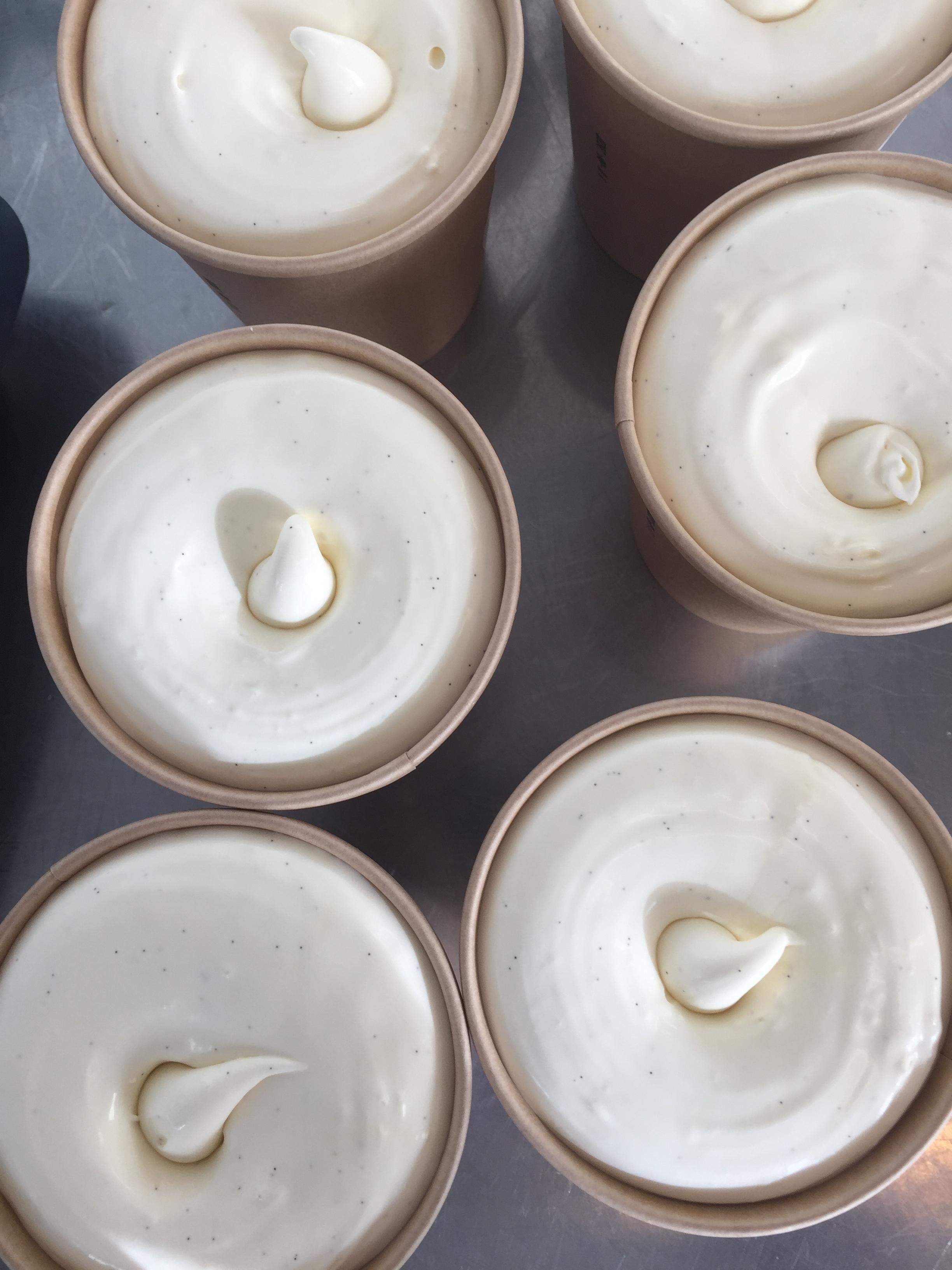 Vårt grundrecept är hämtat ur Prinsessornas nya kokbok och den första leveransen av ekologisk grädde som gjordes i Sverige gick till Österhagenglass!